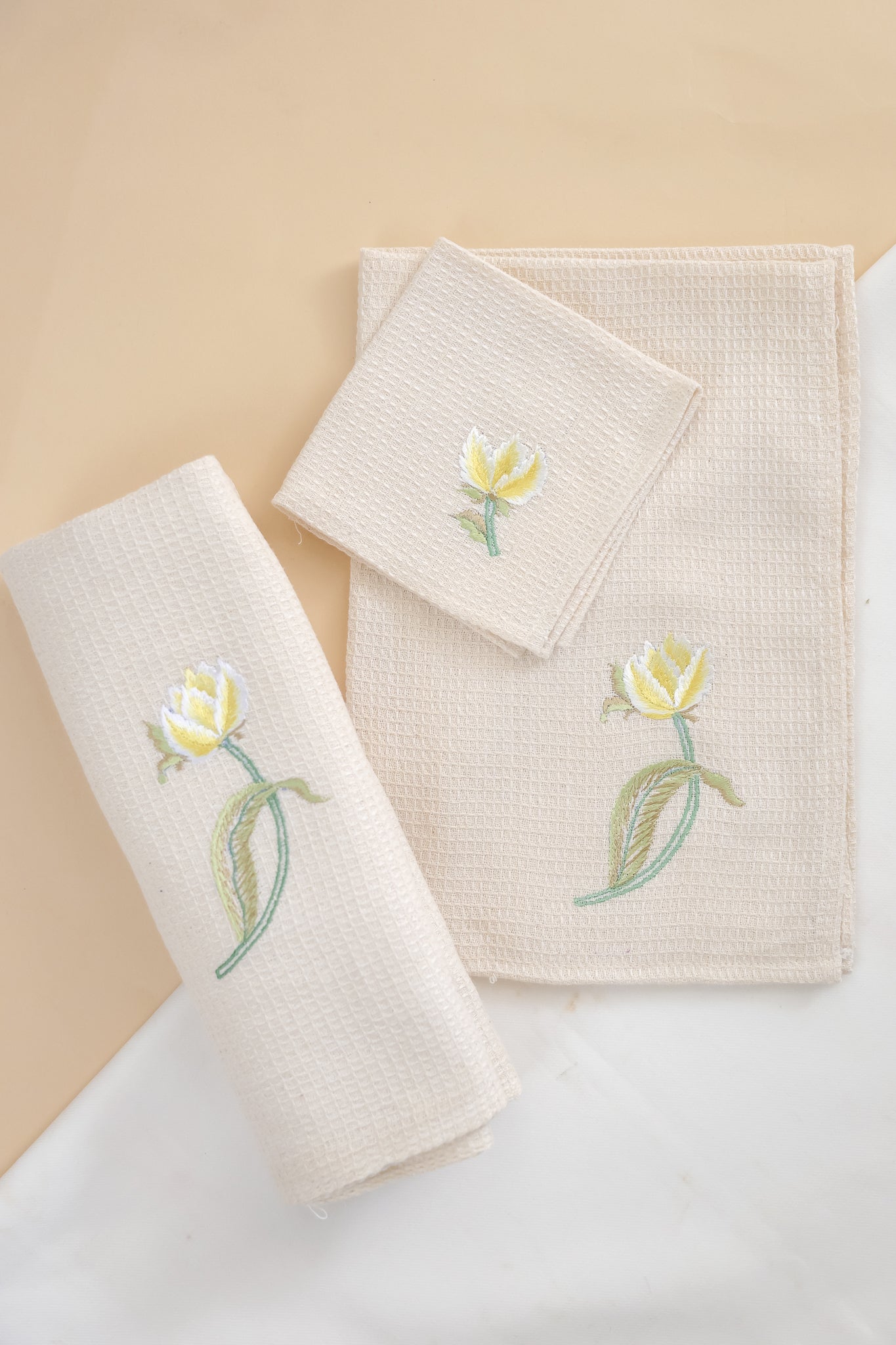 Wrap yourself in luxury and sustainability with our embroidered bath linen collection, crafted from the finest organic cotton. Each piece, embroidered in beautiful floral patterns, is a testament to both style and eco-consciousness.